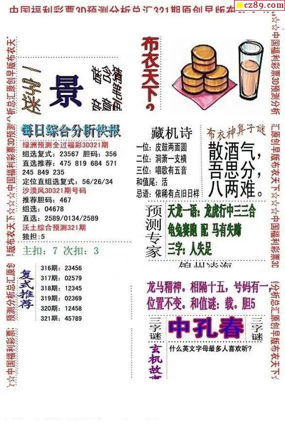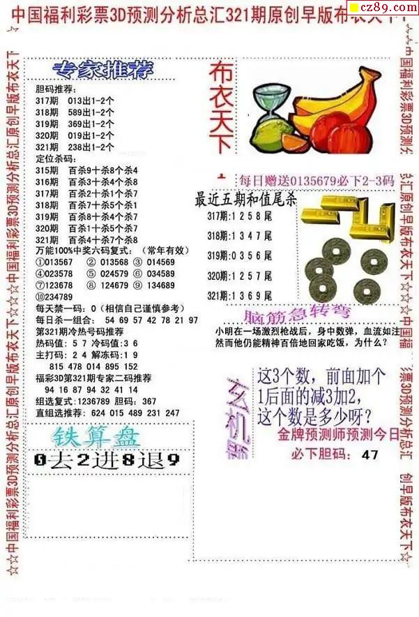 2025年321期牛彩网体彩P3画迷图谜汇总分享